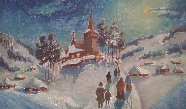 Zgodnie z naszym zwyczajem na początku tej świętej nocy figurka Dzieciątka Jezus została złożona na małym stoliku przy kolumnie, na której stoi figura Matki Bożej Mądrości.